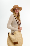Pleciona torebka z naturalnej rafii, wyprodukowana z włoskiego surowca. Ręcznie dekorowana, uchwyt wykonany ze skóry naturalnej.